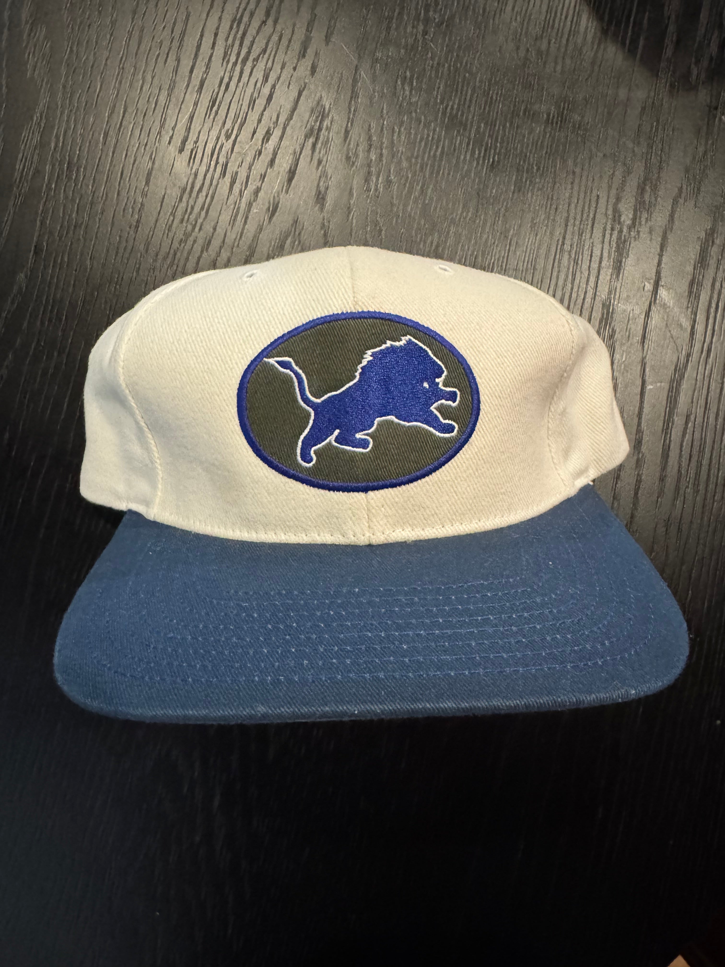 Vintage Detroit Lions Cream & Blue Strapback Hat – Retro Logo