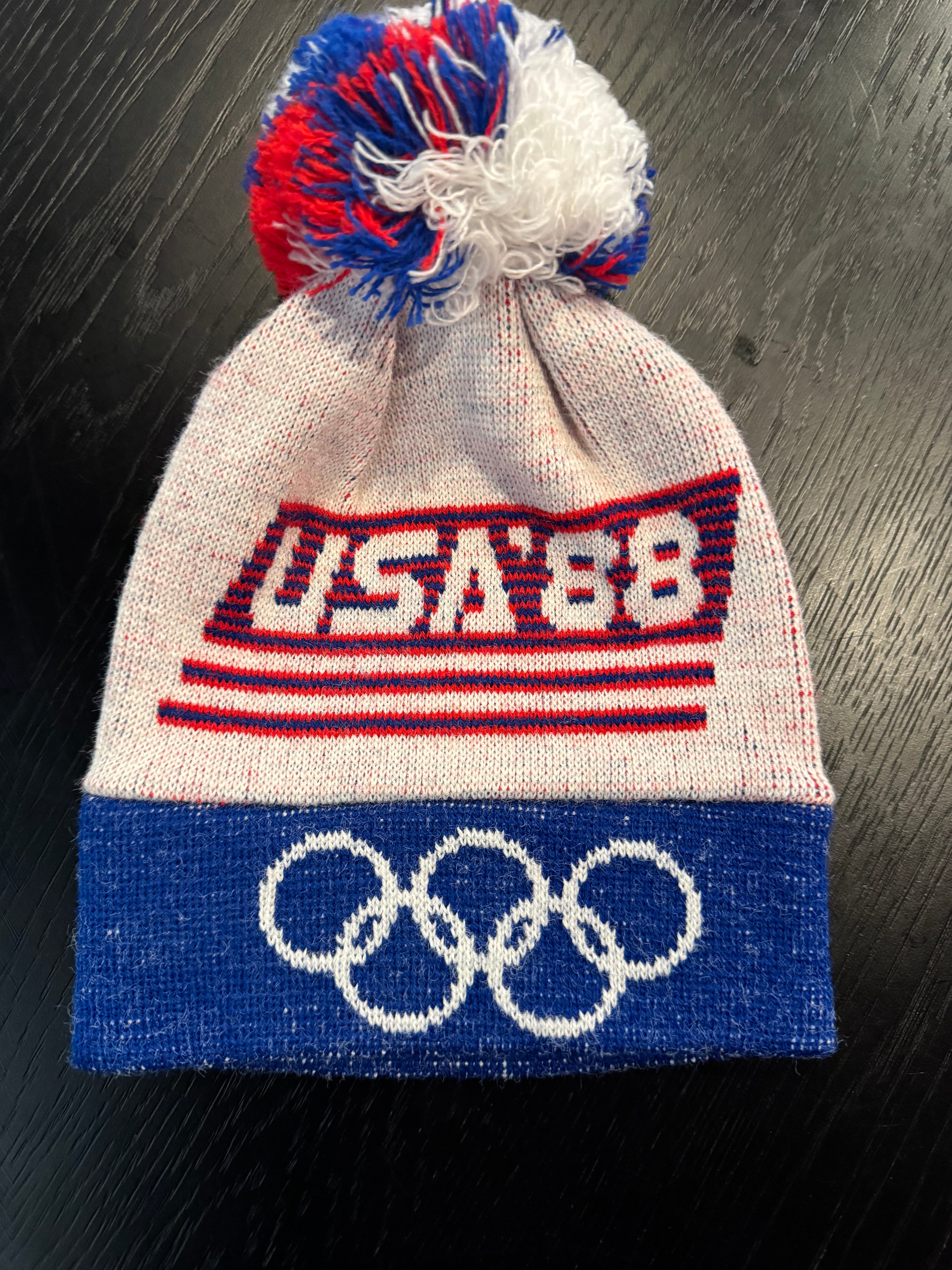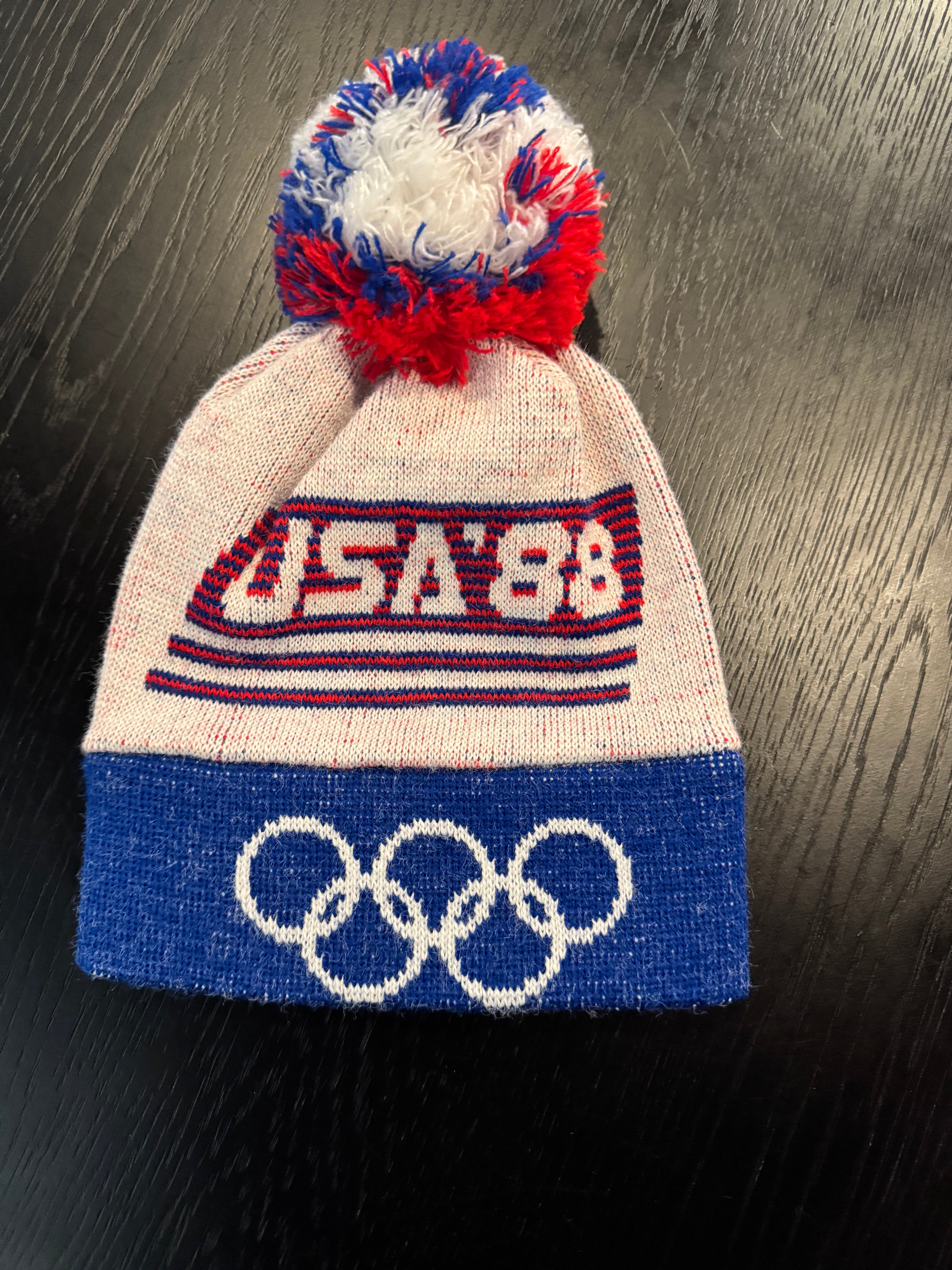 • Vintage USA ’88 Olympic Knit Beanie – Red, White & Blue Pom