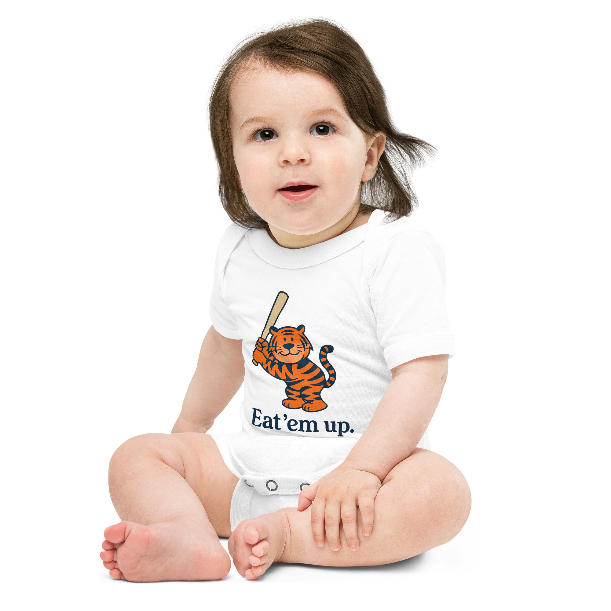 Dress your baby to the nines with this 100% cotton one piece. It has three snap leg closure for easy changing, a comfortable envelope neckline, and a beautiful print that's bound to get the baby all happy and giggling.