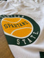 Michigan State Spartans Vintage Gold Spartans Basketball Logo Shorts, size small with pockets and drawstring.